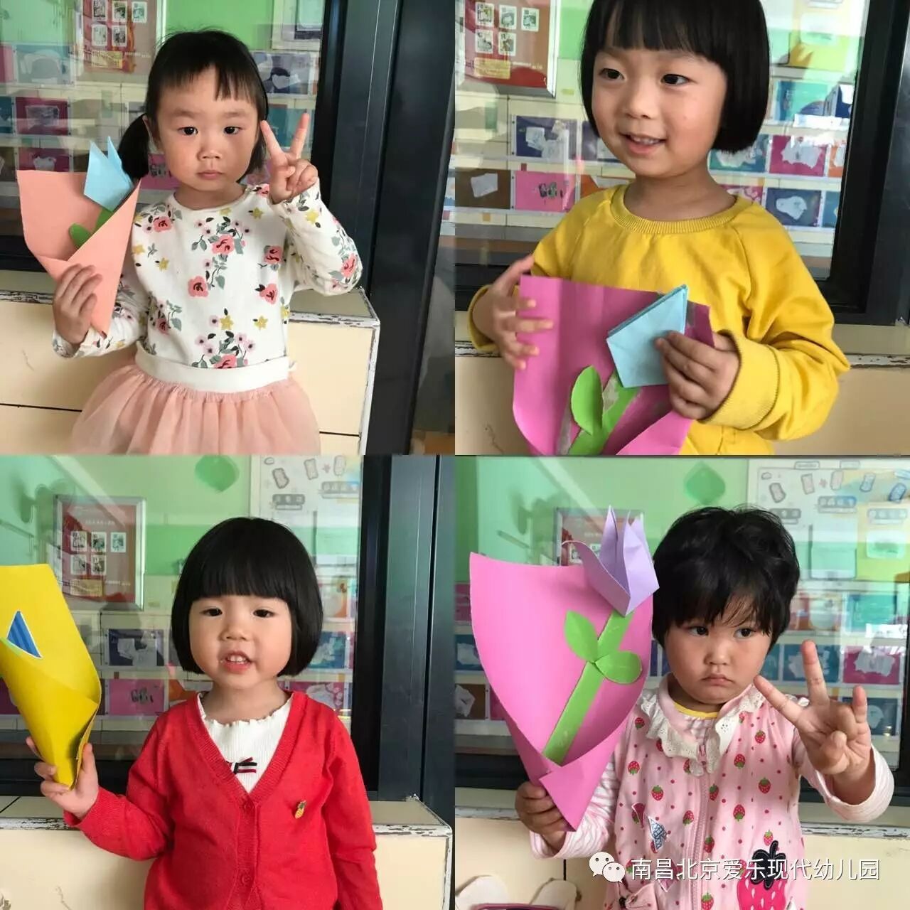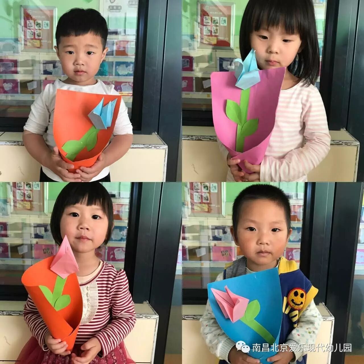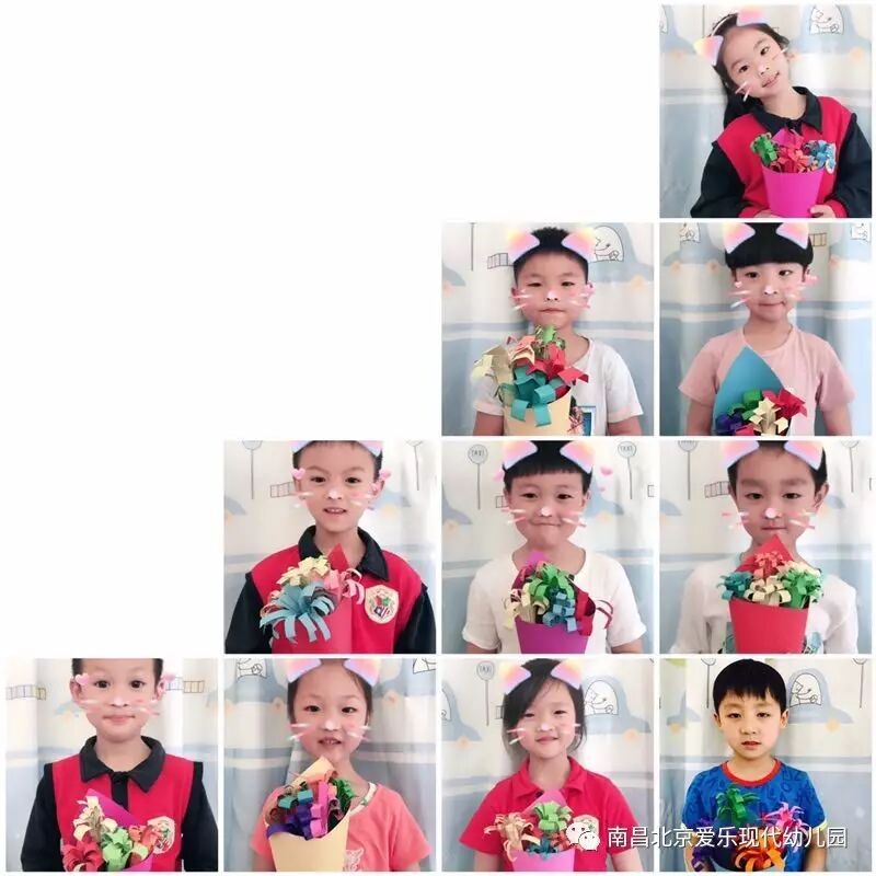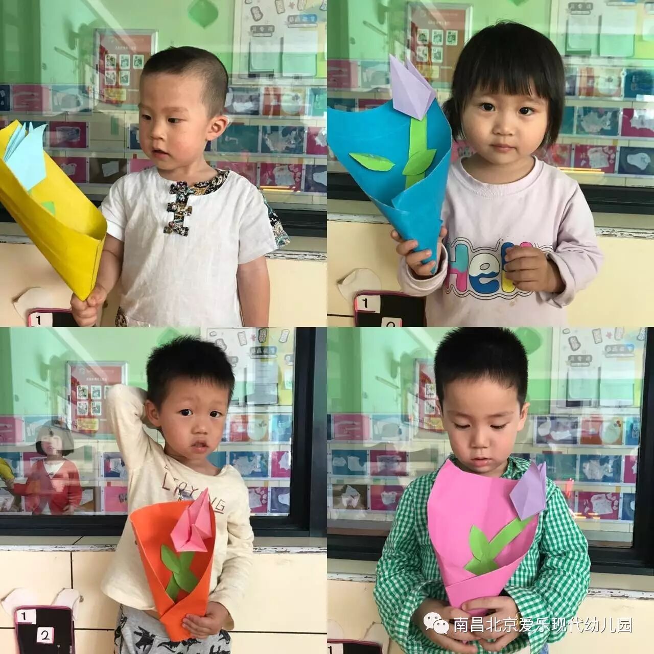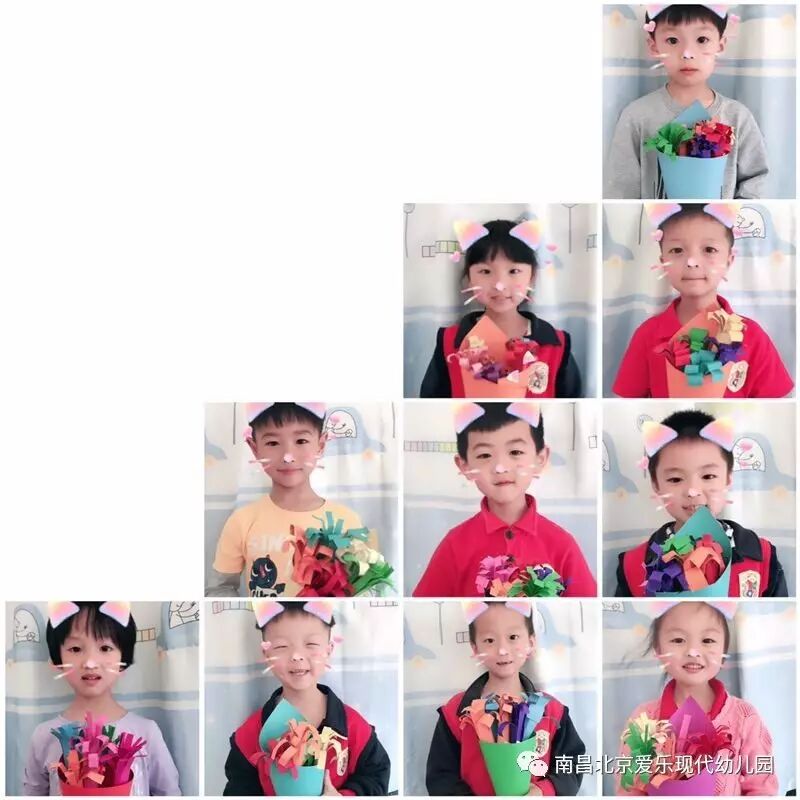 中大班孩子给妈妈送上自己的祝福和亲手制作的小鲜花、小礼物、好妈妈证书,为妈妈背诵古诗。